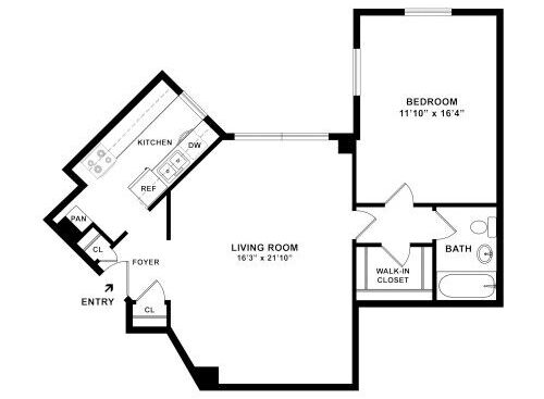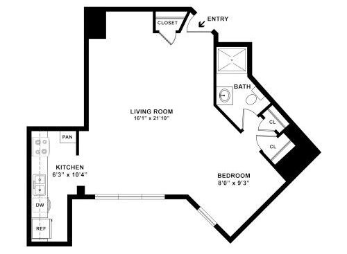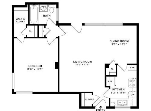 * Floor plans are artist’s rendering. All dimensions are approximate. Actual product and specifications may vary in dimension or detail. Not all features are available in every apartment. Prices subject to change and vary based upon move-in and lease terms; additional fees/charges apply for certain services and amenities; utilities not included. Please see a representative for details.”